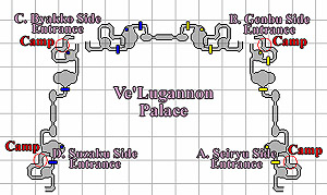 Camp A ( Seiryu side ) is the best spot to camp. Camp B ( Genbu side ) is the worst spot because if the yellow gate is closed someone has to open the gate touching a Monolith at (H-13) near Brigandish Blade pop point and you have to clean 2 Detectors before fish.